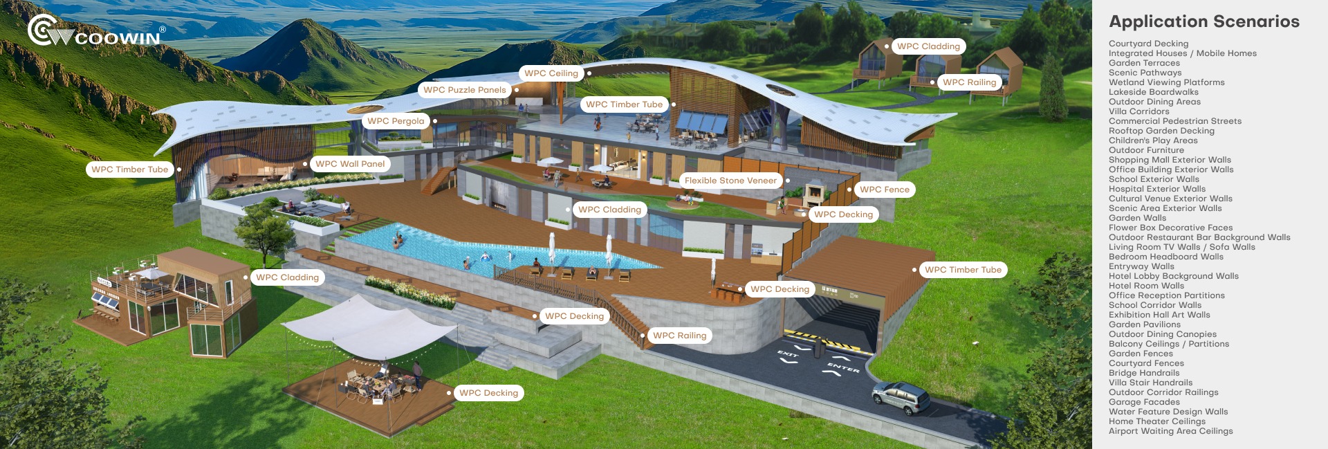 מוצרים עיקרייםחיפוי מרוכבים, חיפוי מרוכבים, גידור מרוכבים, לוח קיר wPC, גיליון שיש uv